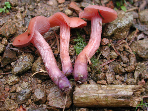 Stipe: rose brunâtre, fibrilleux à feutrage mycelien lilas à la base.